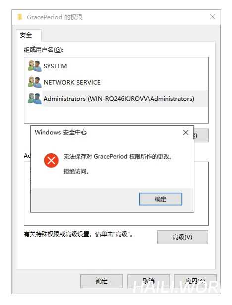 如果提示无法直接修改权限(如下图),则需要更改所有者。