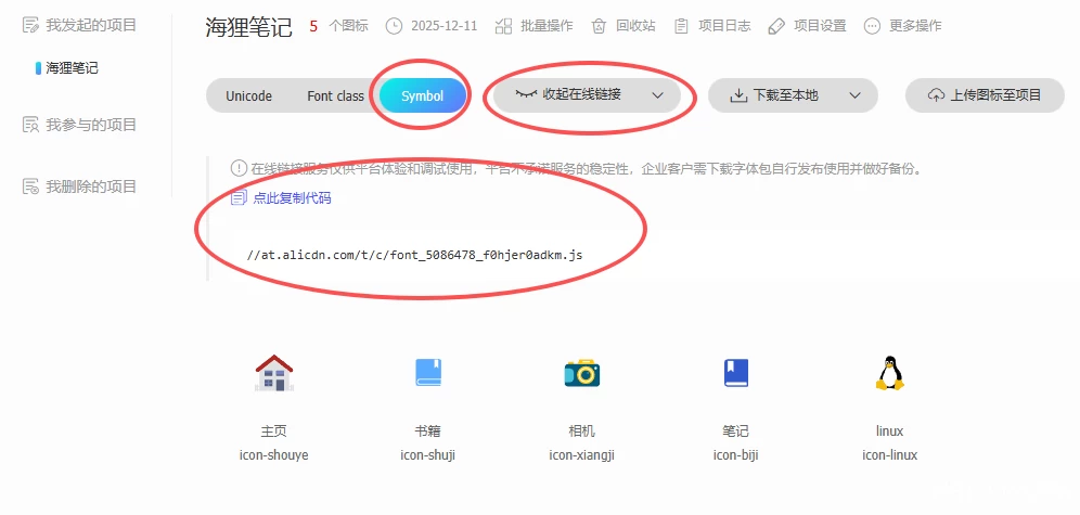 每次添加图标后,都需要更新阿里云的Symbol链接哦