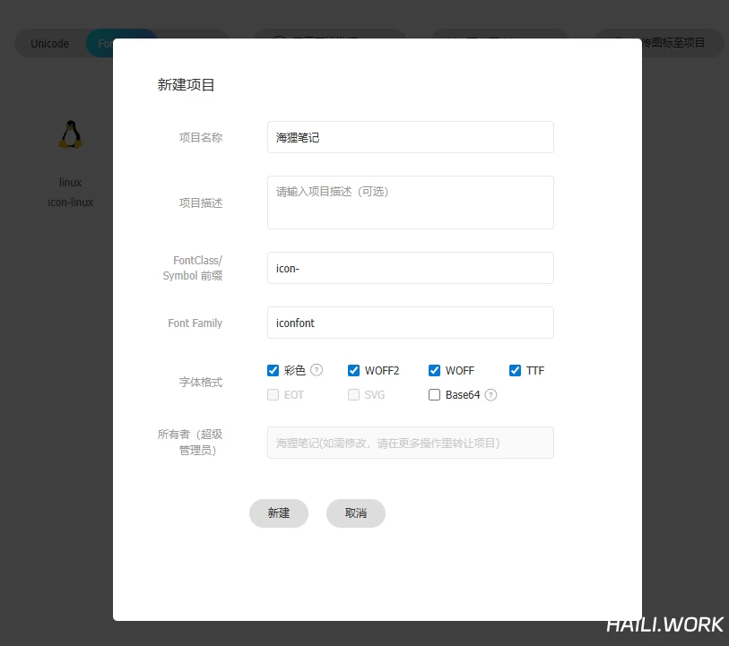 登录 iconfont 账号  →  顶部导航「资源管理」 →  我的项目  →  新建项目