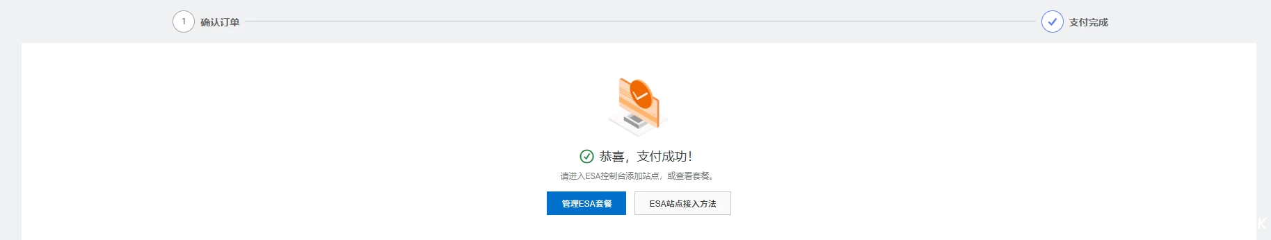 “立即购买”后,因为是0元费用,所以会直接显示支付成功,这时候就可以进入管理页面接入自己的网站啦。