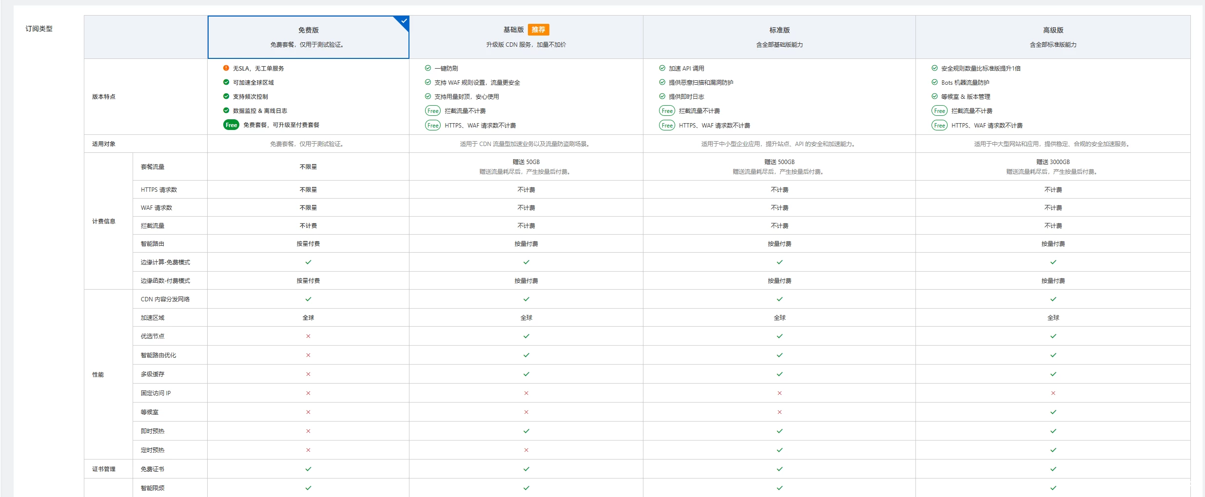 划重点:进入选购页面时,注意要选择免费版,否则只是基础版1个月试用时长。