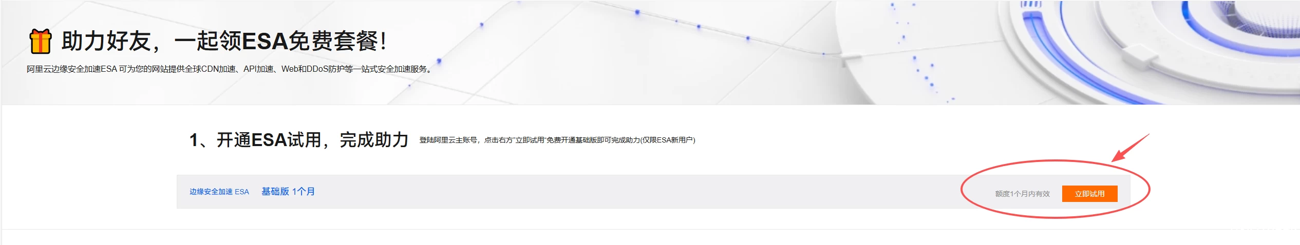 进入活动页面后,点击“立即试用”