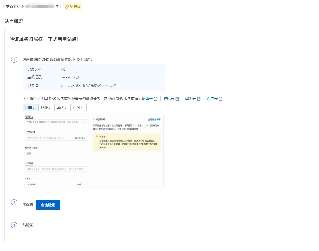 阿里云边缘安全加速 ESA 免费版接入教程
