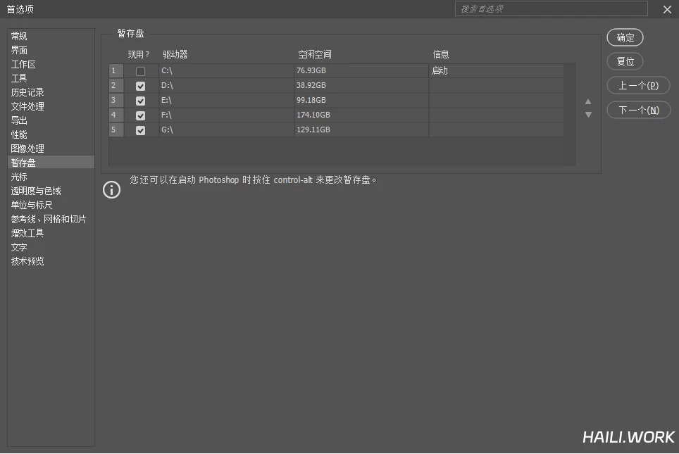 写篇文章简单记录一下,新装的Photoshop需要设置的几个位置,抢救自己的老爷机。