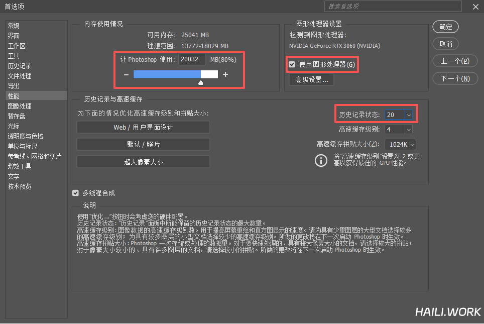 上方就是个人的Photoshop的设置了,有更多好的优化设置可以在下方留言分享。