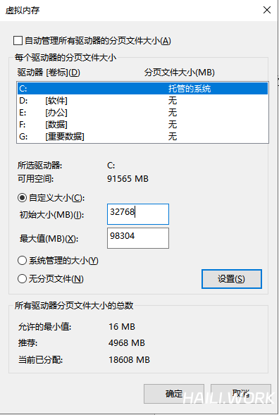 6.初始值:你的内存条✖️1024(例如:32G✖️1024=32768)
